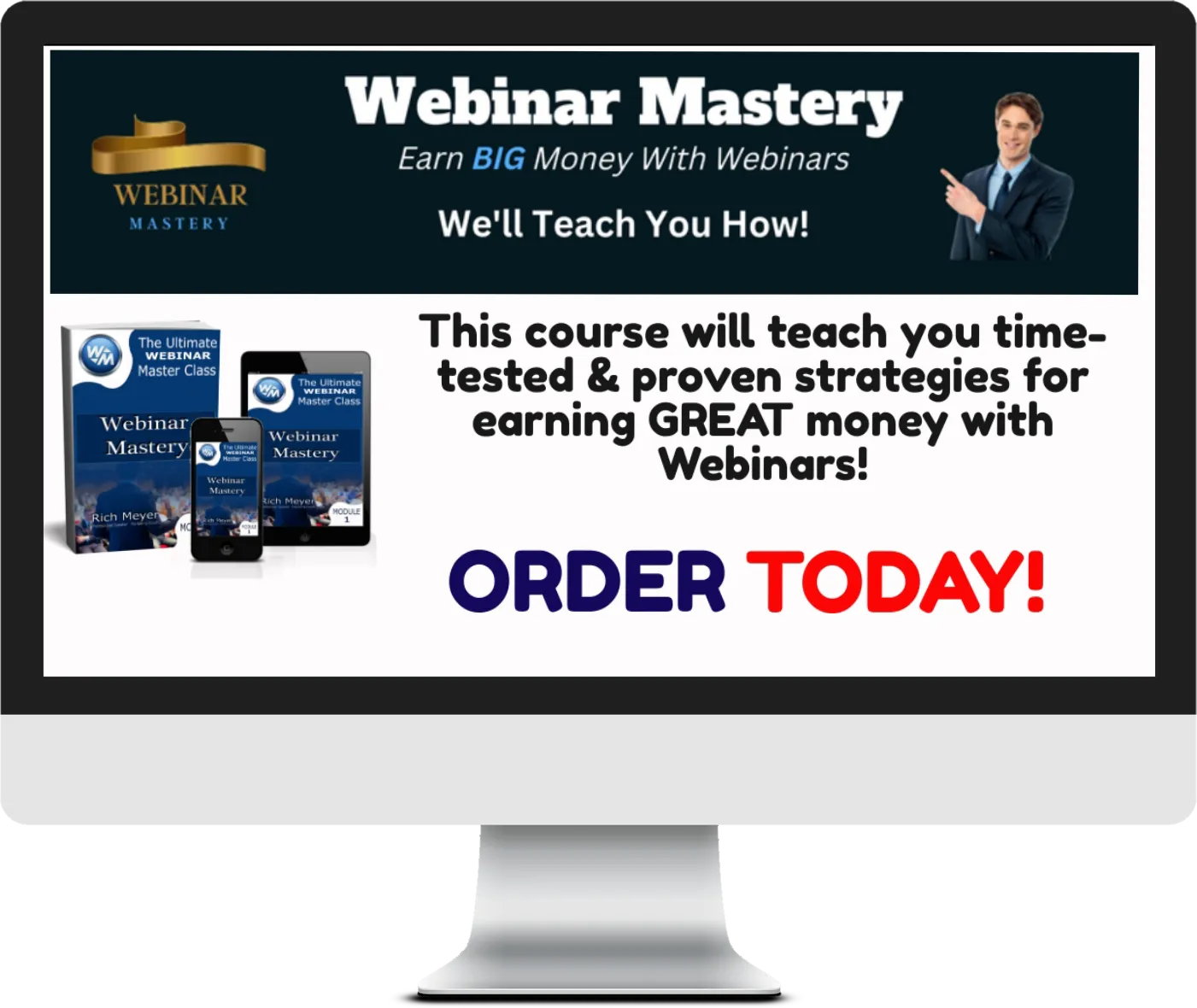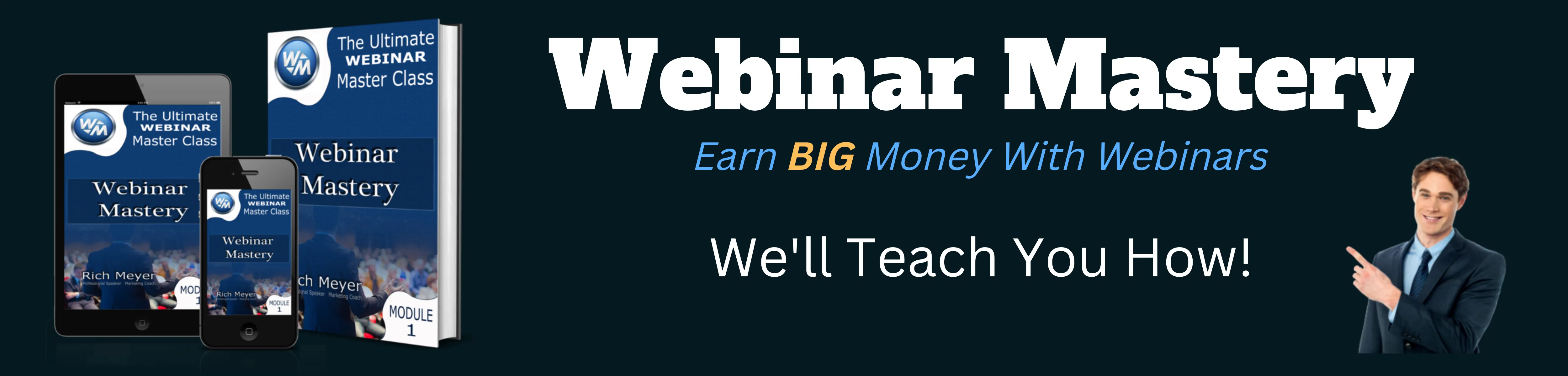 Webinar Mastery will teach you "best practices" for conducting profitable Webinars. I absolutely love this course, and so will you! Thank you, Rich Meyer, for creating Webinar Mastery.