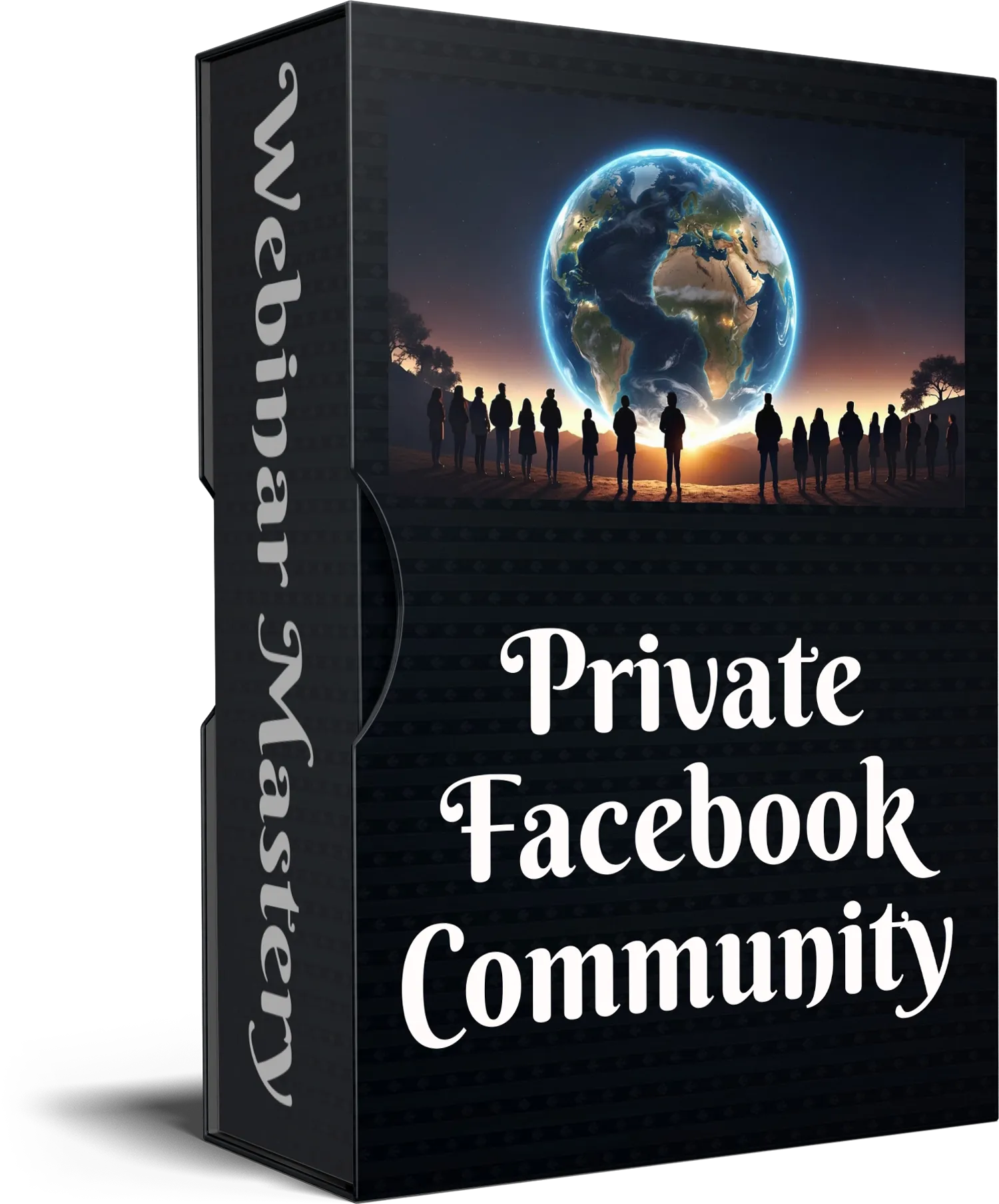 Upon enrolling in the Ultimate Webinar Master Class, you will gain entry to our exclusive Private Facebook Group. This privileged access opens the door to a vibrant community of business owners, online marketers, and entrepreneurs.